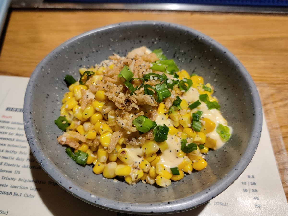 crispy corn tortilla, creme fraiche, shishito salsa verde // contains dairy and gluten, fried in the same oil as gluten and tree nuts