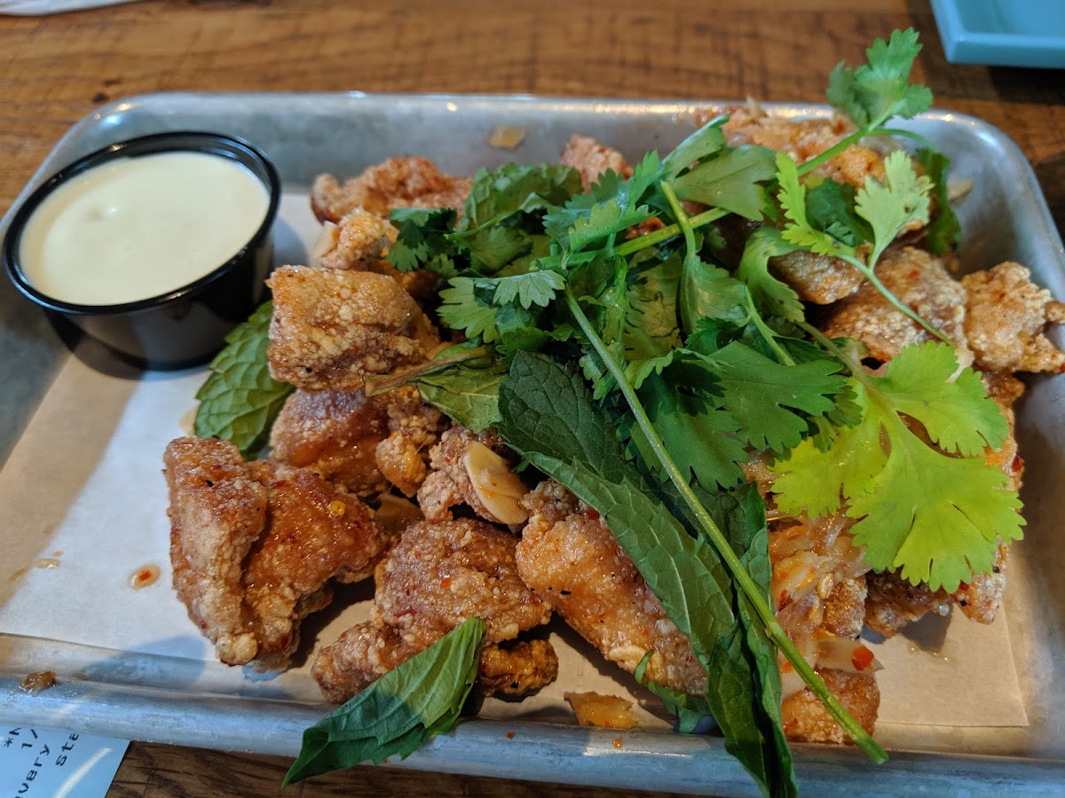 chili aioli, szechuan salt, thai herbs // contains soy and sesame, fried in the same oil with tree nuts and glutenous ingredients