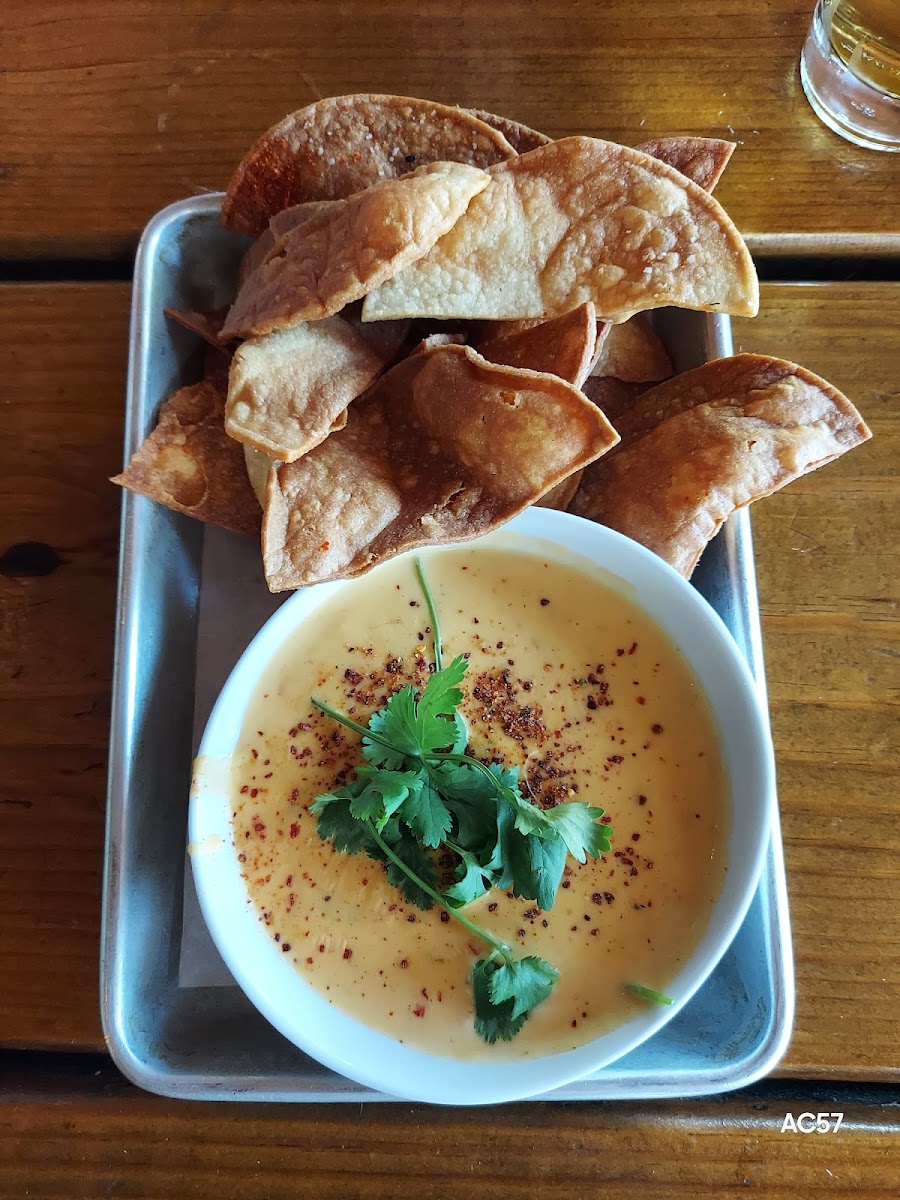 tortilla chips, kimchee furikake // contains dairy and soy, chips fried in the same oil as gluten