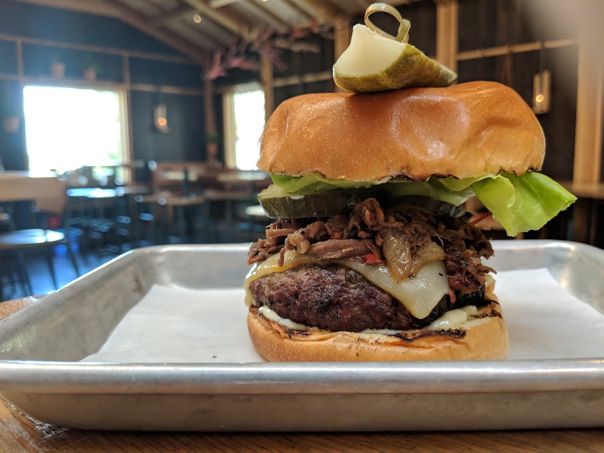 Choice of a sandwich (Caramelized Onion Cheddar Burger, Crispy Chicken Sandwich, or Oak Smoked Pulled Pork Sandwich) and a half side (Crispy Potatoes, Texas Sweet Corn, or Crunchy Cabbage Salad)